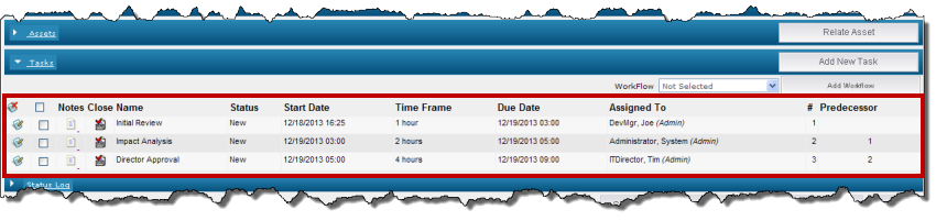- All of the Tasks associated with the WorkFlow will appear below the Tasks bar.