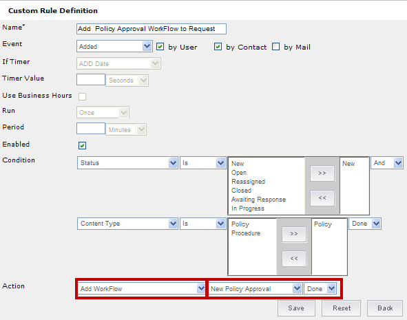 Automatically Assign a WorkFlow Using a Custom Rule:
